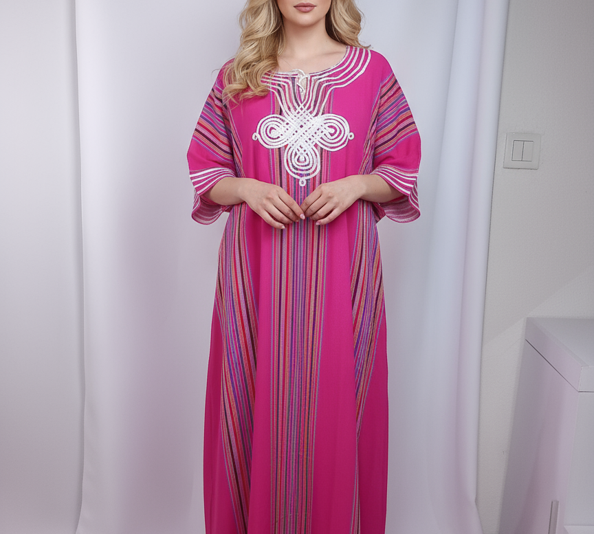 Gandoura Marocaine à Rayures : Élégance Authentique Cousue par nos Couturiers au Maroc