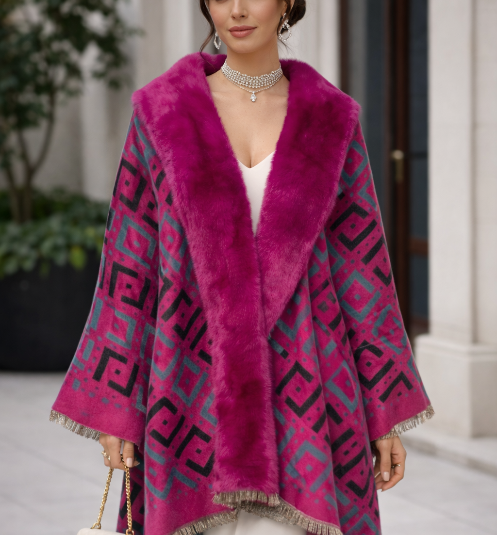 Cette écharpe façon poncho séduit par son design raffiné et ses finitions en fausse fourrure ultra douce. Son motif graphique moderne et ses couleurs vibrantes apportent du caractère à toutes vos tenues, qu’elles soient casual ou sophistiquées.