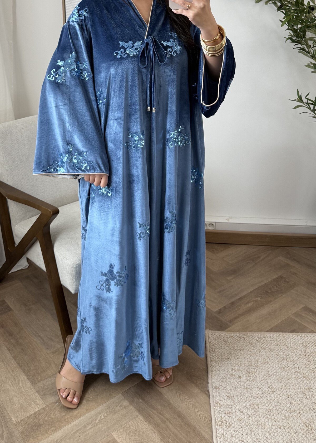 Abaya en velours, Robe Pailletée avec Poches – Taille Unique