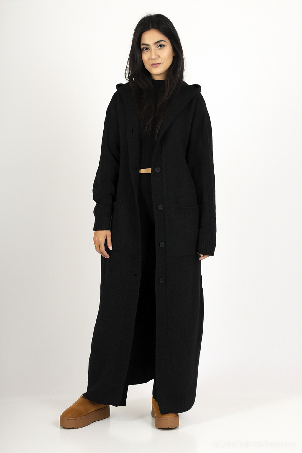Transformez vos journées fraîches en moments de confort et de style avec notre cardigan long en grosse maille.