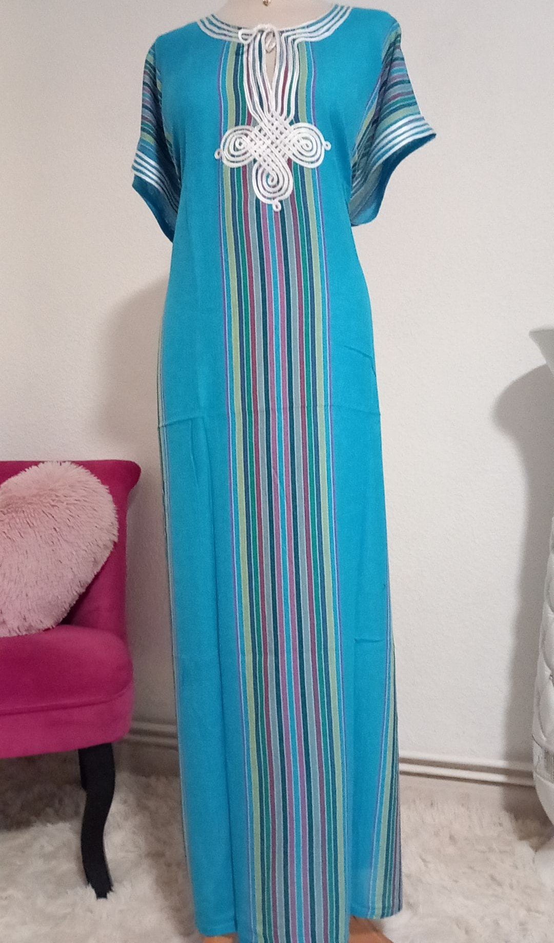 - Polyvalence : La gandoura à rayures est idéale pour une variété d’occasions, qu’il s’agisse de sorties décontractées, de journées à la plage, de réunions familiales ou même de soirées estivales.