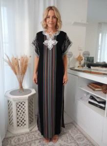 La gandoura marocaine à rayures est bien plus qu’un simple vêtement ; c’est une expression de culture, de confort et de style.