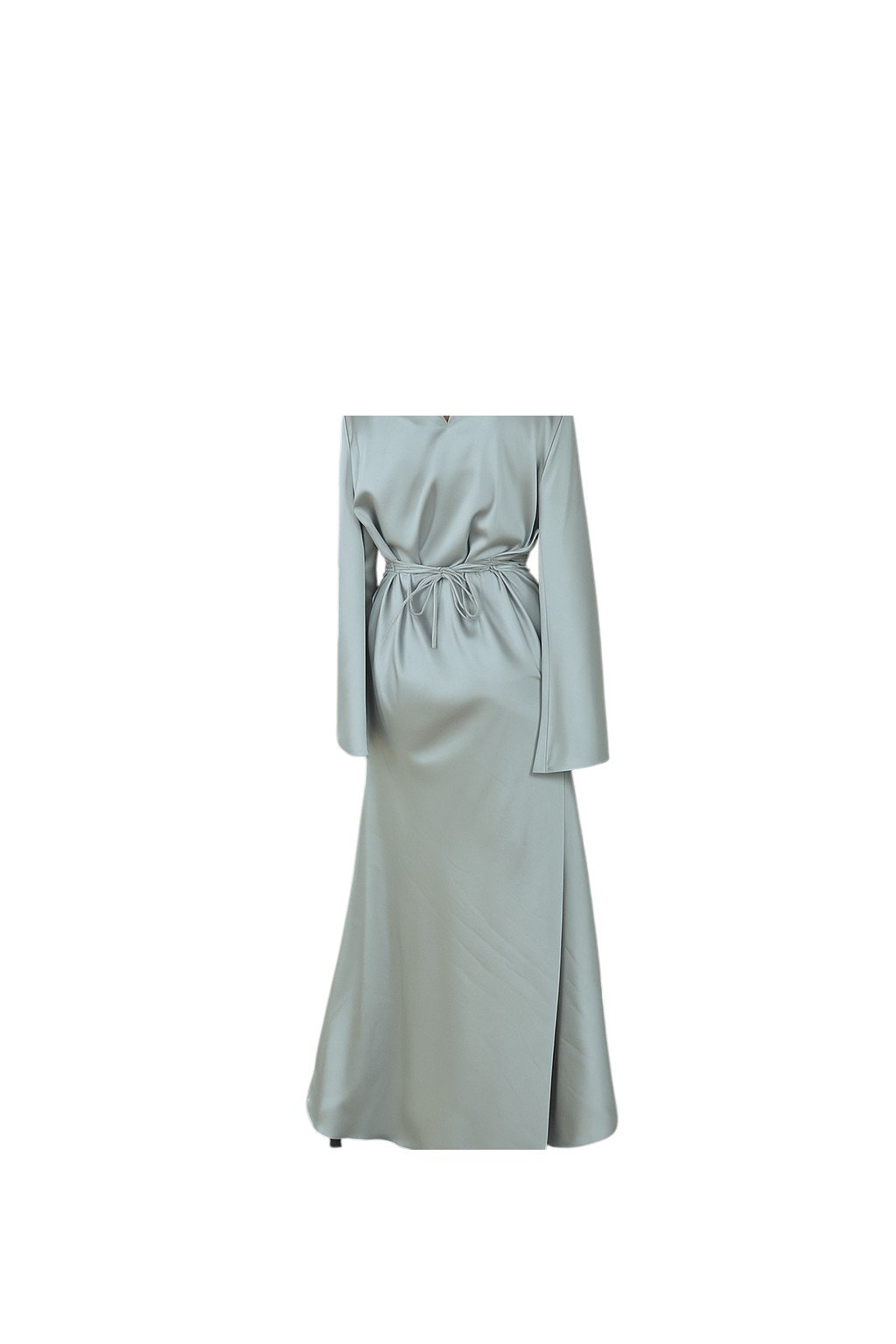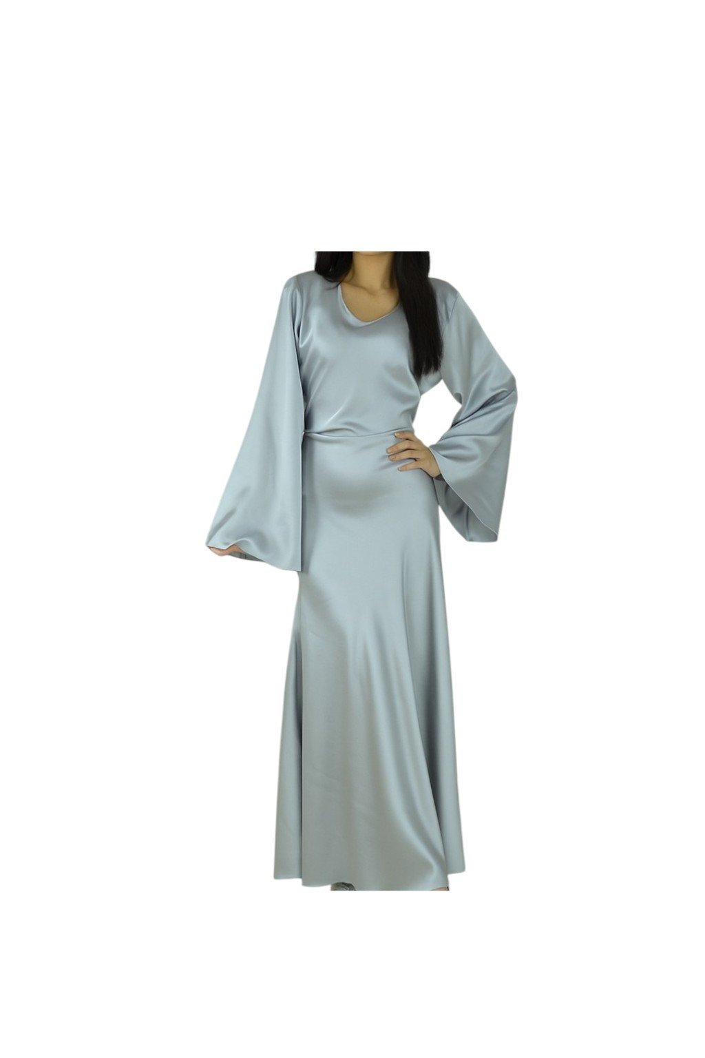 Robe Longue en Satin à Nouer dans le Dos avec Manches Évasées – Taille Unique