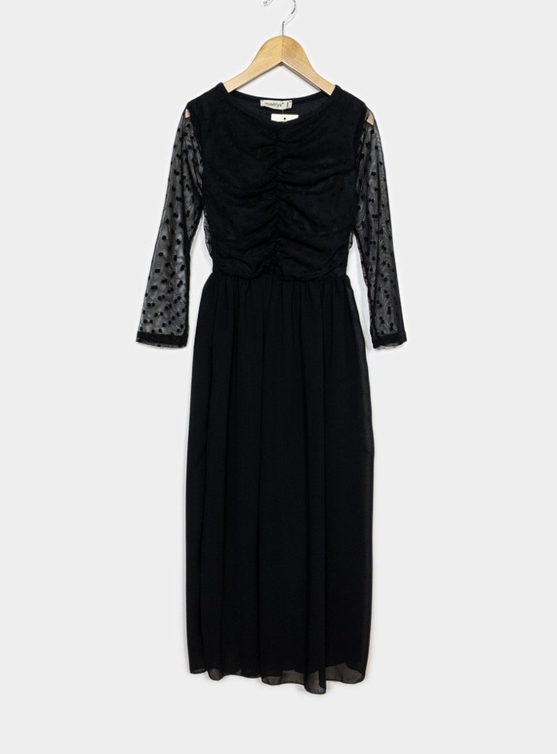 Découvrez notre robe longue en mousseline doublée, spécialement conçue pour les jeunes filles. Disponible en noir et jaune, cette robe allie élégance et confort, parfaite pour toutes les occasions spéciales.